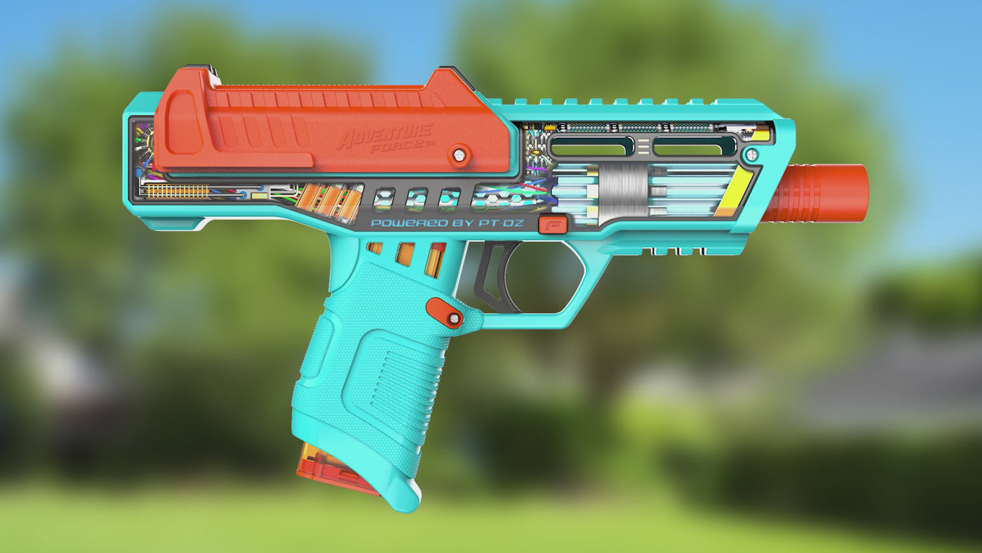 Meet the Adventure Force Tactical Strike Brute Pro – a compact, high-powered, clip-fed dart blaster engineered for rapid-fire domination. This spring-powered handheld blaster is packed with pro-level performance features, including slamfire action that lets you unleash darts as fast as you can pump and pull the trigger. Designed for competitive gameplay and backyard battles alike, the Brute Pro brings tactical speed, accuracy, and power to every mission. Built for use with half-length Adventure Force Pro Darts, the Brute Pro delivers intense velocity and precision, blasting darts up to 140 feet. Whether you're targeting distant opponents or storming the field in close-range skirmishes, this blaster gives you the edge with clip-fed convenience and slamfire capability that keeps the action going. What sets the Brute Pro apart is its performance-focused design. A detachable threaded scar barrel helps tighten shot grouping and improve accuracy, making it an ideal choice for competitive play. The built-in safety lock adds an extra layer of control and peace of mind during high-energy battles, so you can focus on winning the game while staying safe. At just the right size for agility and maneuverability, the Brute Pro is easy to wield in fast-paced matches without sacrificing power. Whether you're practicing trick shots, joining team battles, or gearing up for a tournament, this blaster is ready to perform. Includes two 6-round clips, 12 half-length pro darts, and protective eyewear. Recommended for ages 14+. Compatible with Nitroshot+ Half-Length Darts, Bamboo Half-Length Darts, and Venom Pro Magazines. Coming soon to Walmart.