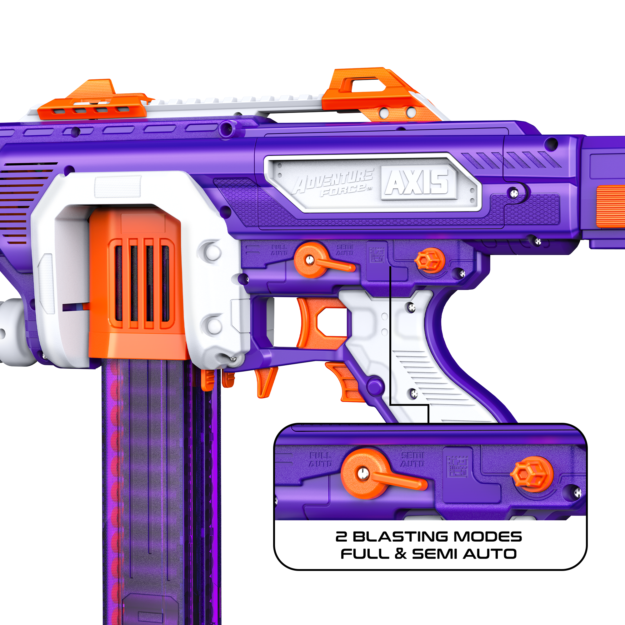 The Adventure Force Axis Switch Pro is engineered for players who want nonstop action and pro-level performance. This fully automatic flywheel blaster features a unique quick-switch dual-clip system, letting you swap between two 20-round loaded magazines instantly—no stopping, no downtime. Powered by an included rechargeable battery, the Axis Switch Pro unleashes up to 6 darts per second and reaches distances up to 160 feet.