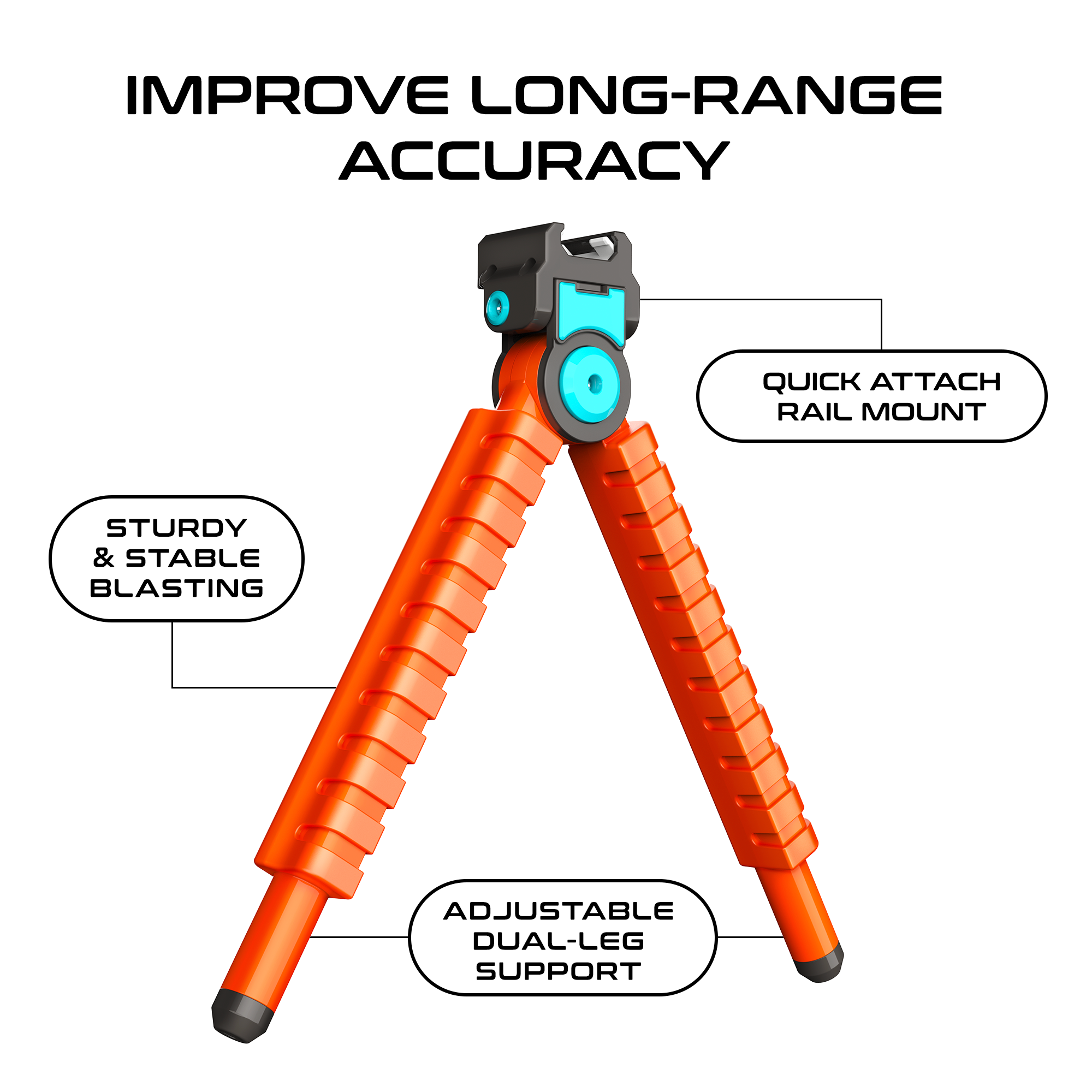 The Bi-Pod Attachment allows you to mount and stabilize any blaster with a lower Picatinny rail – improving both short and long-range accuracy. Designed for on-the-go play, this foldable accessory attaches easily and travels light – so you can take it with you to any blaster battle. Mount it to any Picatinny rail and enjoy a solid, balanced feel while you aim with confidence. Sleek when folded, ready when you need it.