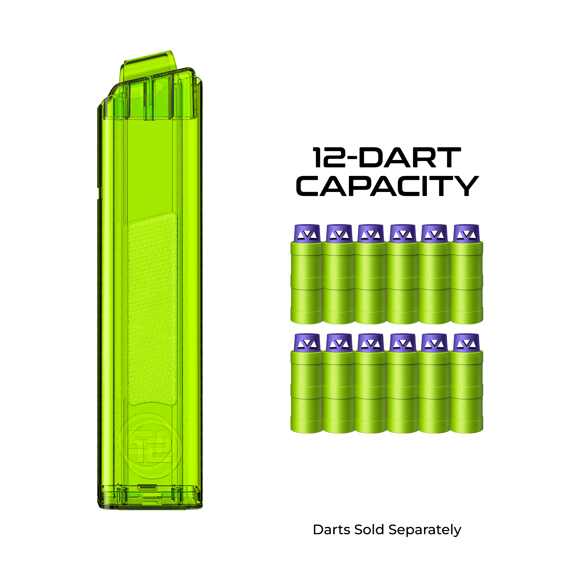 Keep your Venom Pro, Volcanic Pro, and Brute Pro loaded and ready for action with this tailor-made 12-round half-length foam-dart mag. Don't let your blasting power run low—grab an extra Slanted 12-Round Pro Magazine (or two) and stay in the game longer. (Blasters sold separately.)